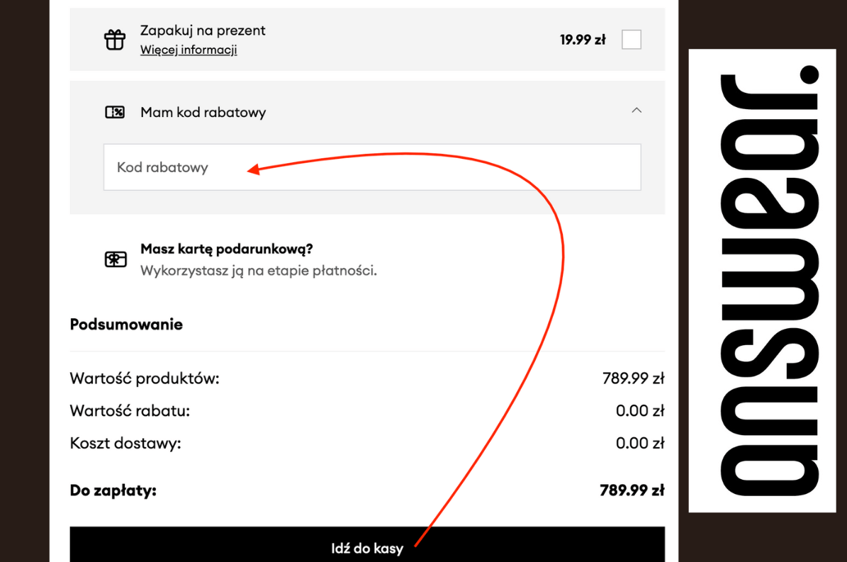 Podczas finalizacji zamówienia, w odpowiednim polu wklej skopiowany kod rabatowy.
